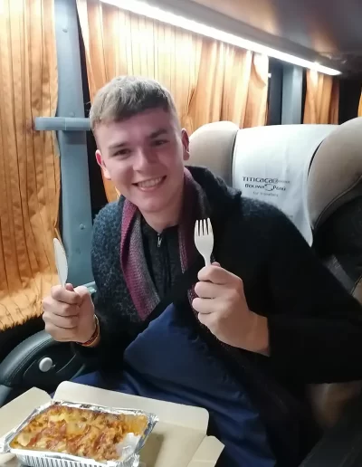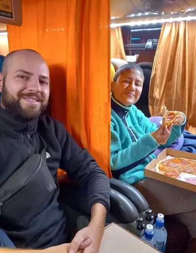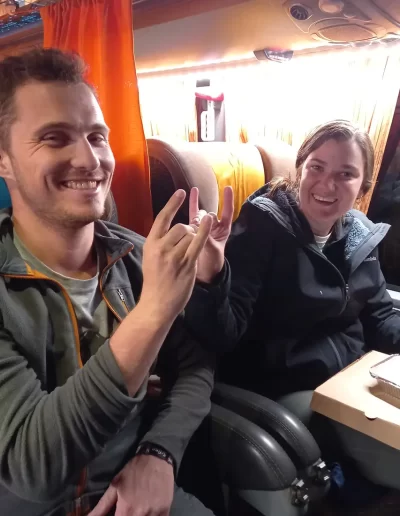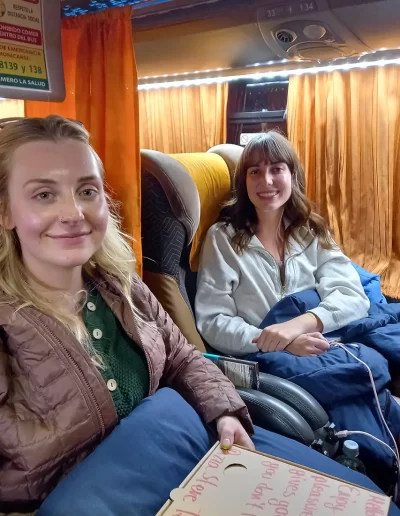 This is an excellent service. Every effort is made to ensure the safety of passengers’ luggage. We had the luxury seats downstairs on the bus. This like business class on a plane. The seat reclines almost fully, is wide and has a platform for feet and legs so you can lie almost flat if you are of average height or lower. Blankets and pillows were provided as well as hot drinks, water, and two small meals. There is a toilet on board. The bus made a stop just before Uyuni, where there is a viewing tower to seethe desert and distant salt flats.