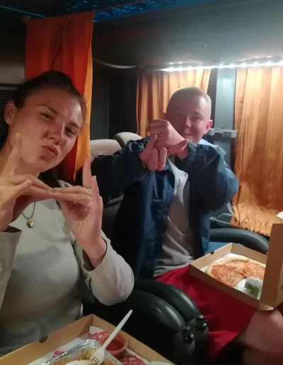 English speaking, Wifi on board, Comfortable, Safe, Clean, On-Time. Pillow, blanket, water and food all provided.